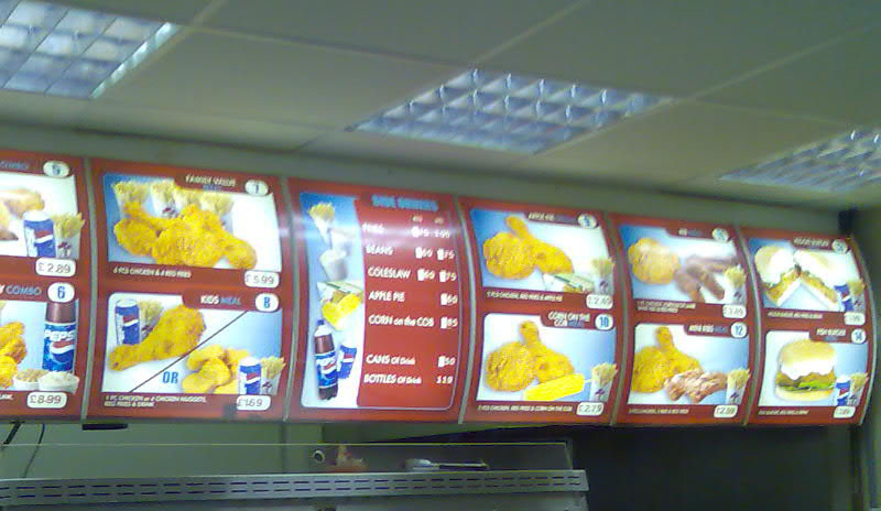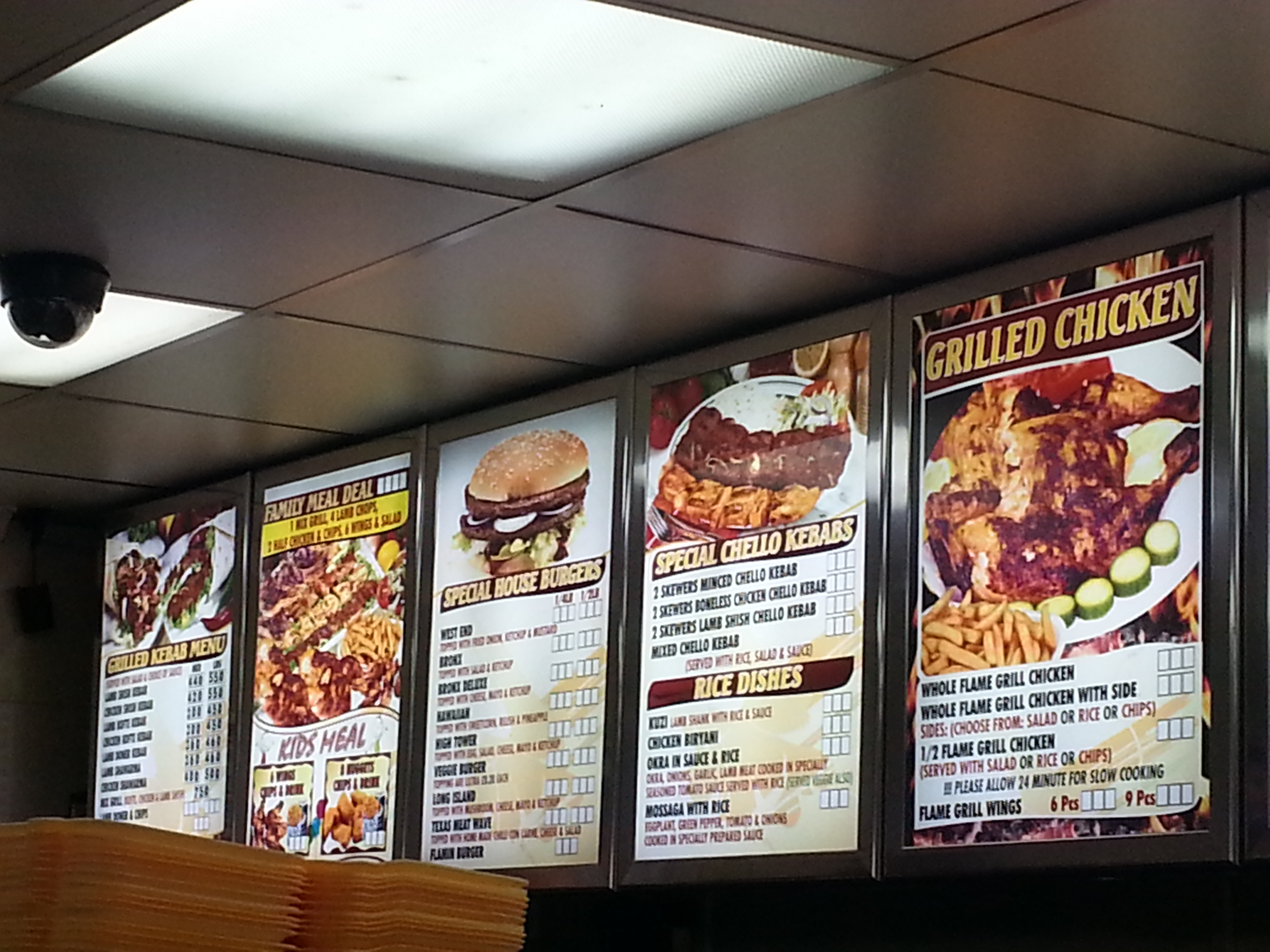 Menu light boxes are the perfect solution for all your internally illuminated menu displays. The menu boxes have easy graphic change as the designs allow for simple removal of the front panel and fitting of the printed menus.